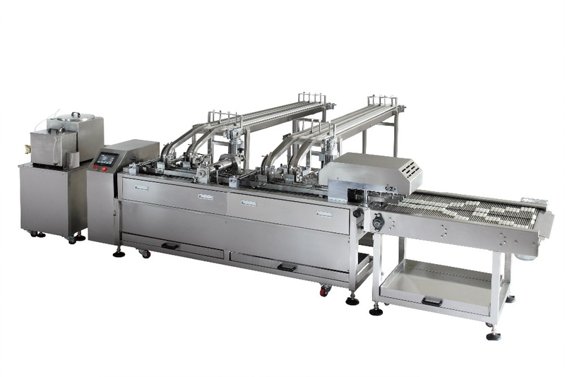 The Creaming speed is 500-600 per minute. By changing the molds and increasing the cream tanks, it is possible to switch between one color and two color biscuit sandwiching.
